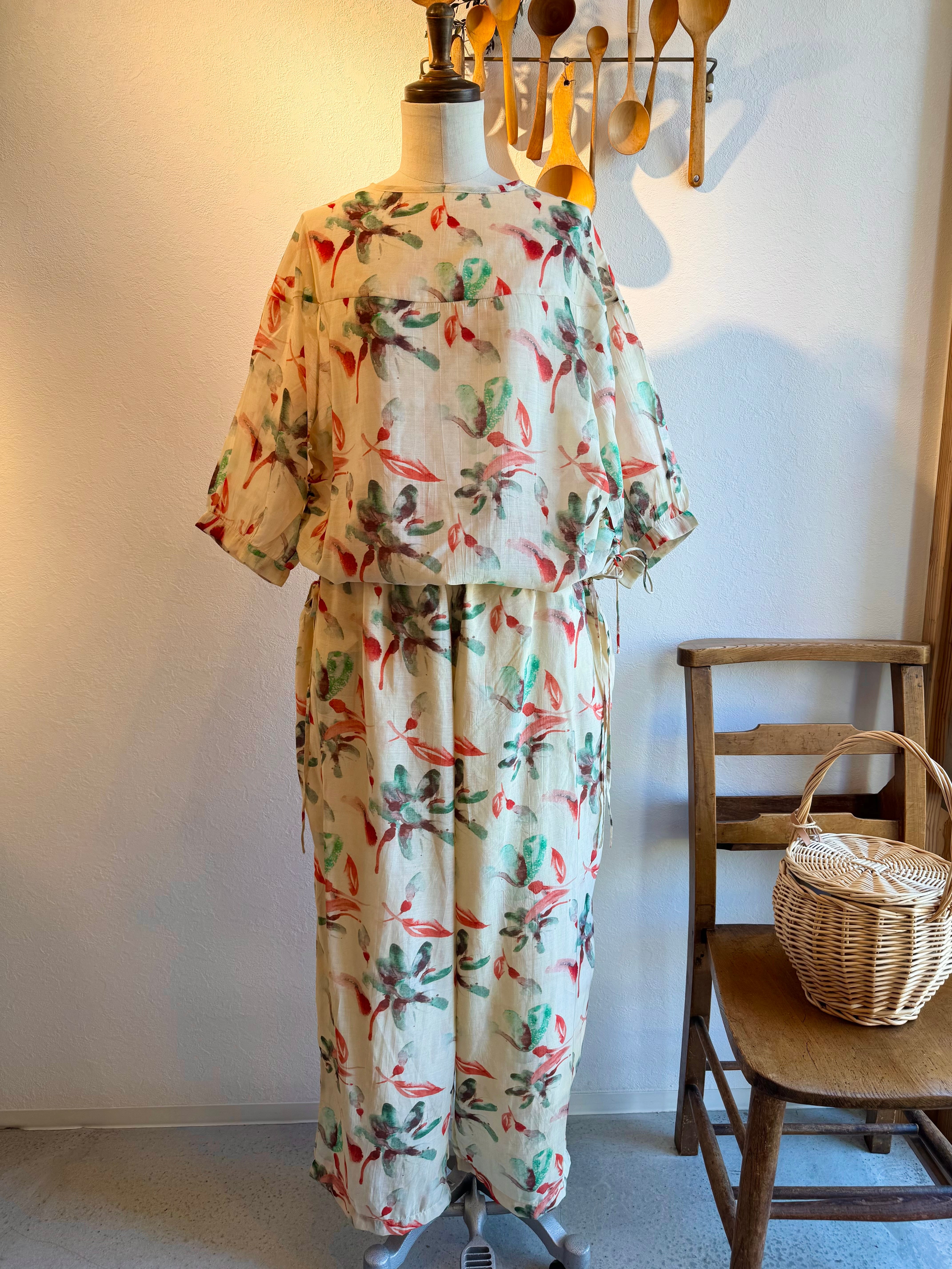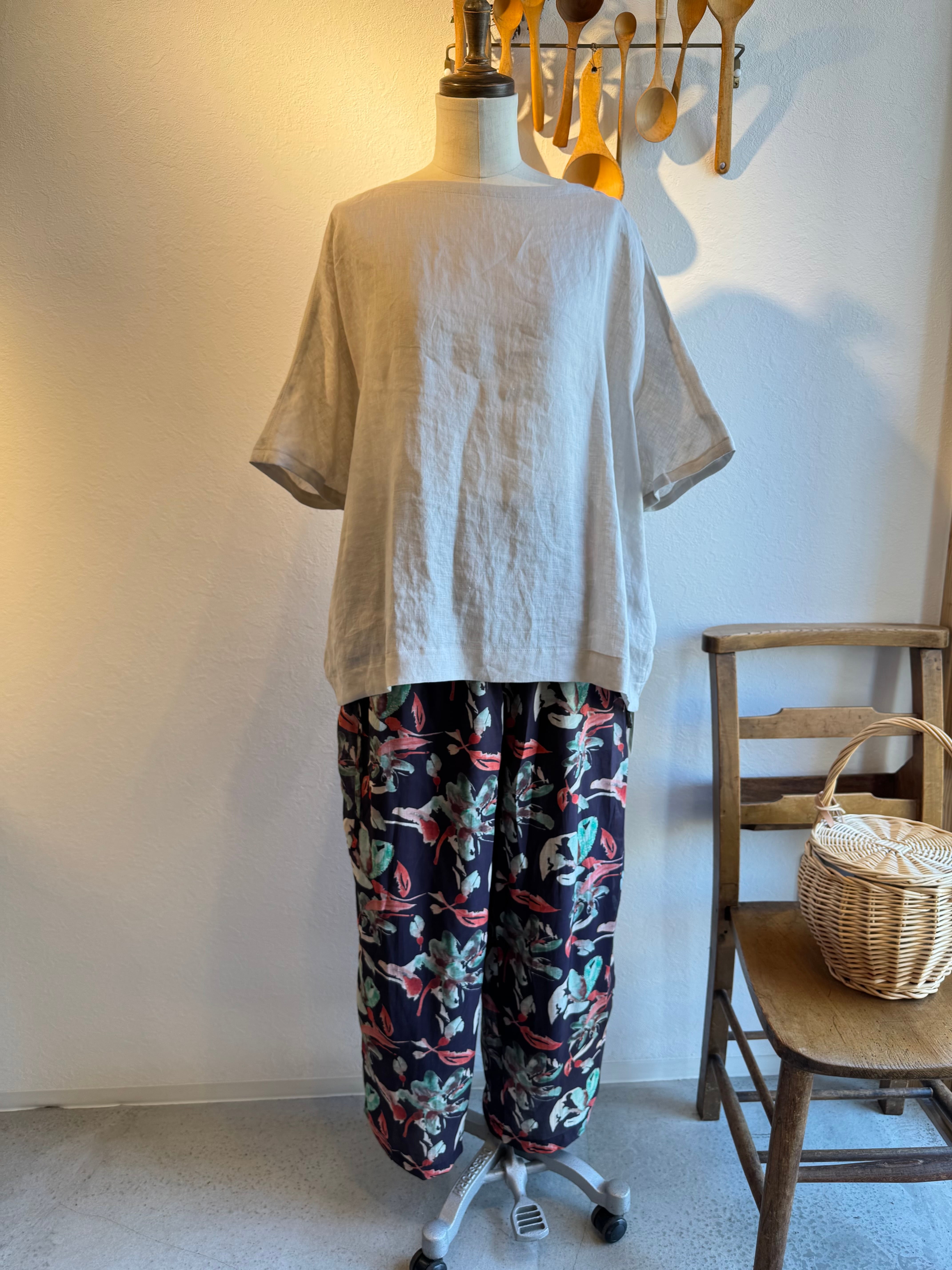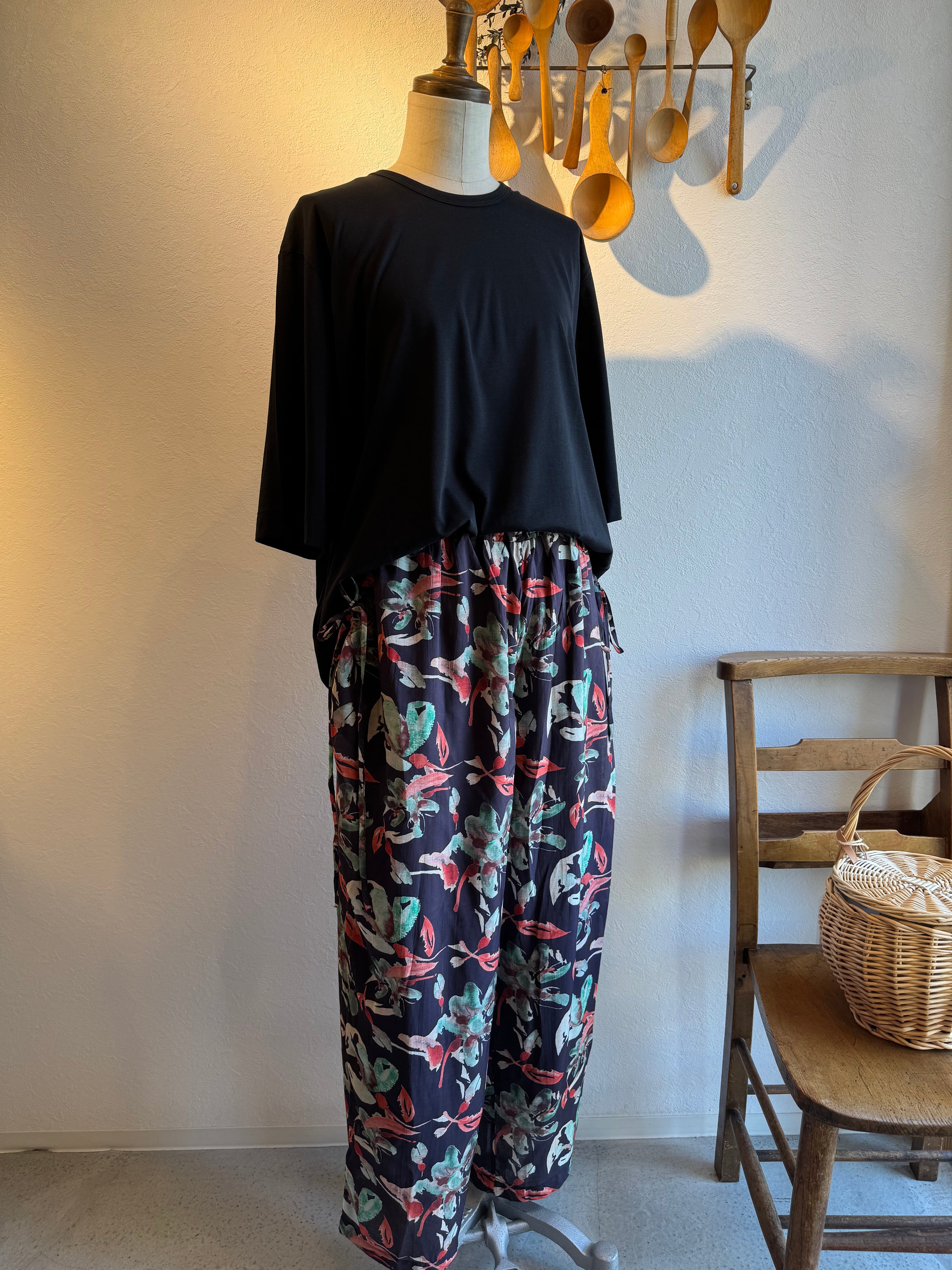 doux bleu フラワーインドプリントパンツ