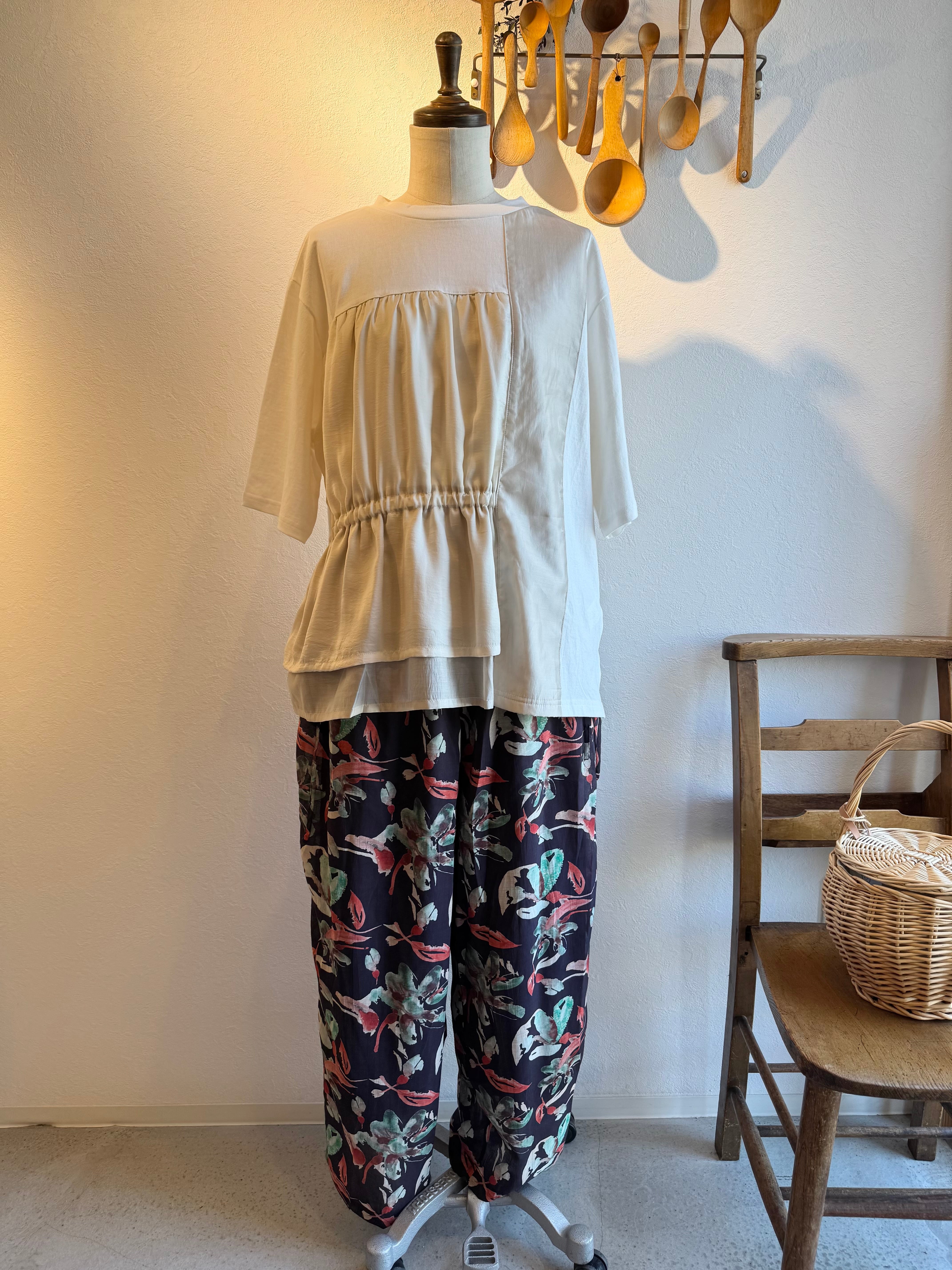 ギャザーからふわりと流れるリラックスしたゆるストレートライン。